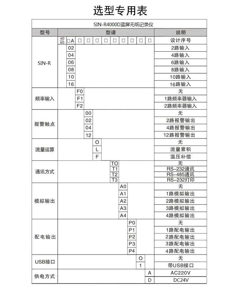 SIN-R4000D系列無紙記錄儀是一種高速高性能微處理器和5.6英寸單色液晶顯示屏,對現場各種溫度、壓力、流量、電量等信號實現監測、控制和記錄功能。 SIN-R4000D系列無紙記錄儀可自由組態輸入標準電流、標準電壓、熱電偶、熱電阻、頻率等信號,可實現為傳感器配電和繼電器報警輸出,并且可通過U盤或通訊方式與上位機進行數據交換。