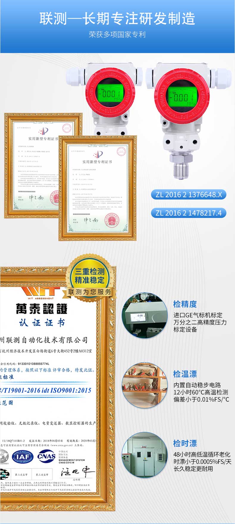 聯(lián)測SIN-P400全數(shù)字電路保證精度,保證長期零點(diǎn)和線性穩(wěn)定,現(xiàn)場液晶顯示,多種量程選擇,防雷擊,防射頻干擾,液晶顯示可通過按鍵調(diào)整零點(diǎn)和量程,方便用戶調(diào)試。
