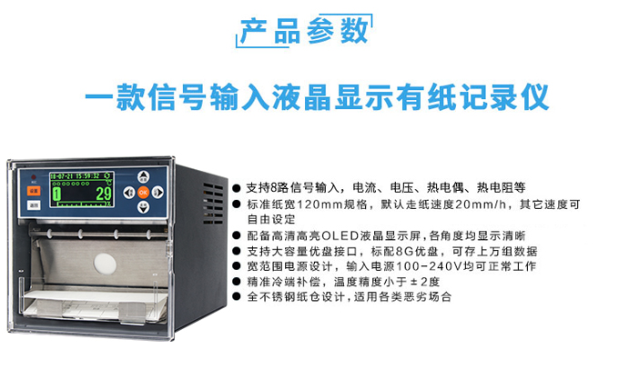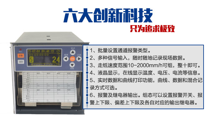 SIN-R1200有紙記錄儀最多具有8路輸入通道,通道之間采用點點隔離的方式。每路通道均可以接收多種信號,如:熱電偶信號、熱電阻信號、電壓信號、電流信號等。記錄儀可以對被測信號進(jìn)行數(shù)字顯示、趨勢記錄以及數(shù)字記錄,能在110mm寬的紙格上同時記錄刻度值、時間以及每個信號的曲線并且將通道號印在各通道的軌跡旁邊。
